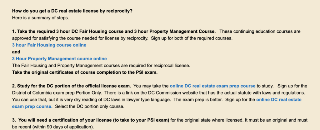 If you’re already licensed in another state, according to the D.C. Department of Licensing and Consumer Protection, you’ll still have to meet some basic D.C. requirements.